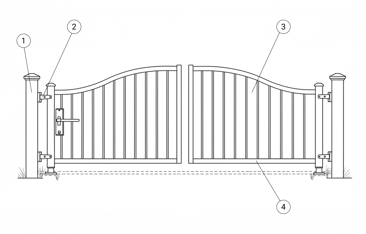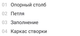 Изделия выполняют из каркаса, столбов, и наполняют створки выбранным заказчиком материалом. Каркас изготовлен из трубы прямоугольной или квадратной. Для столбов подходит профиль 100х100 мм или 80х80 мм.
